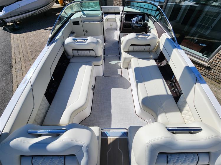 The LS6 features the most versatile transom in its class with not only dual multi-position UltraLounges and a low-to-the-water swim platform, but also two fold-away rumble seats.